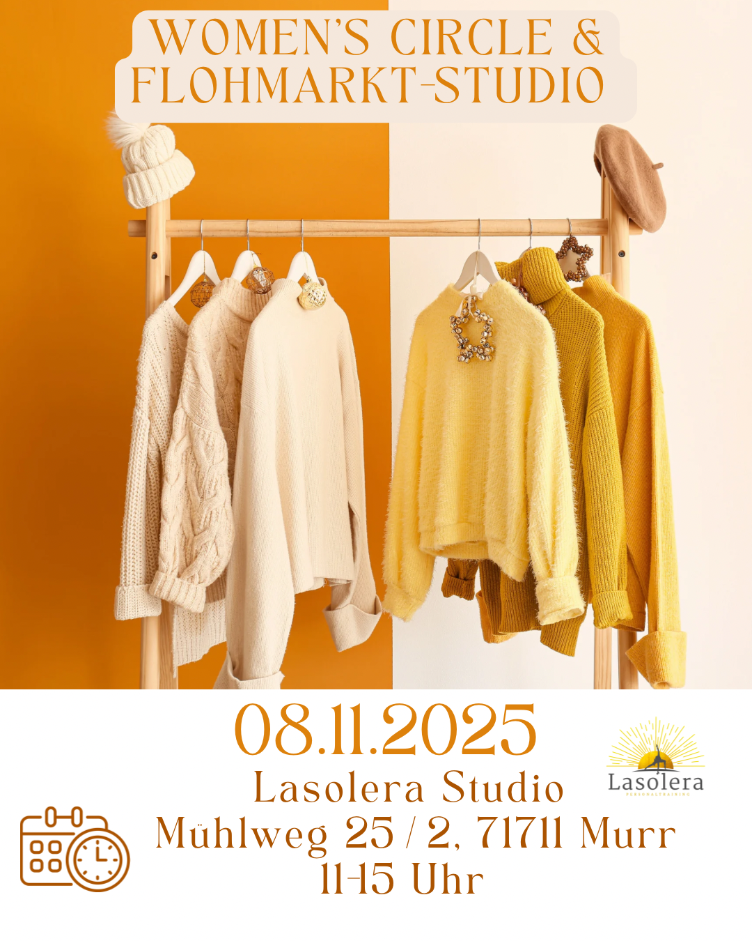 Komme gerne 30 Minuten vor Event Beginn, um dir ein Plätzchen für deine Kleider und/oder deine Produkt-Ausstellung zu suchen. Unsere Vorstellung ist es, Stände aufzubauen, an denen wir Frauen uns informieren und austauschen können.